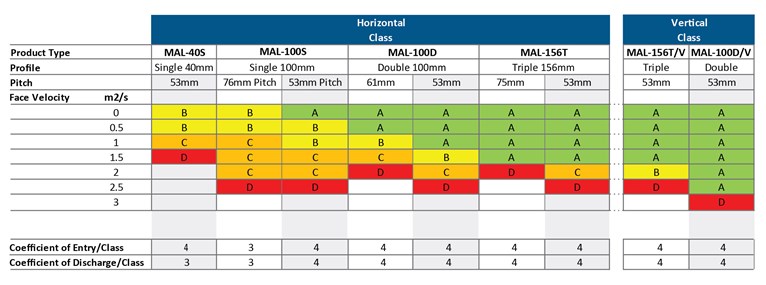 Face Velocity - resistance to ingress of rain Classes A - D (classes indicate highest water resistance to least water resistance).